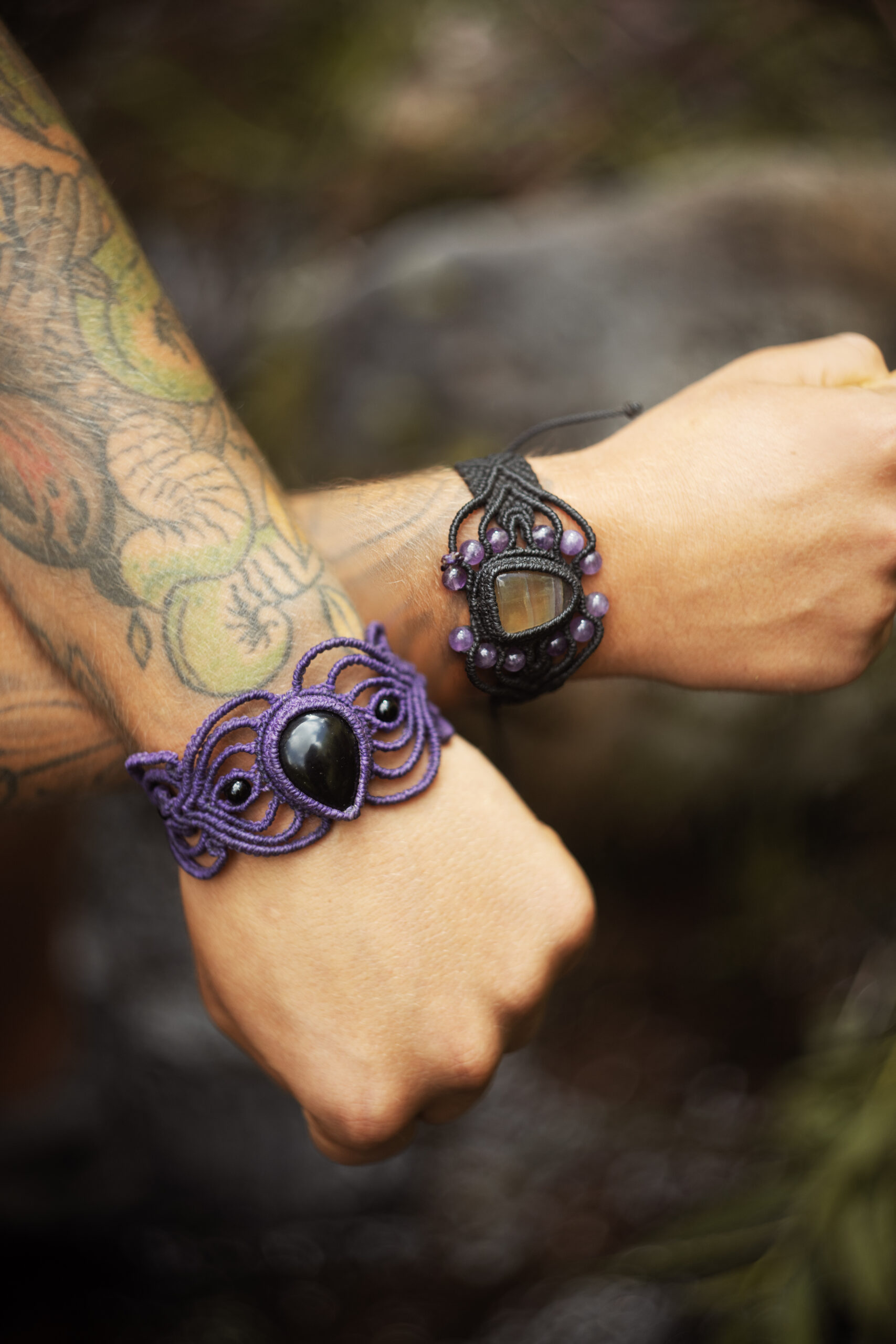 A handcrafted bracelet featuring an African Fluorite stone at the center. Its woven design creates a balanced piece with a refined yet grounded presence.