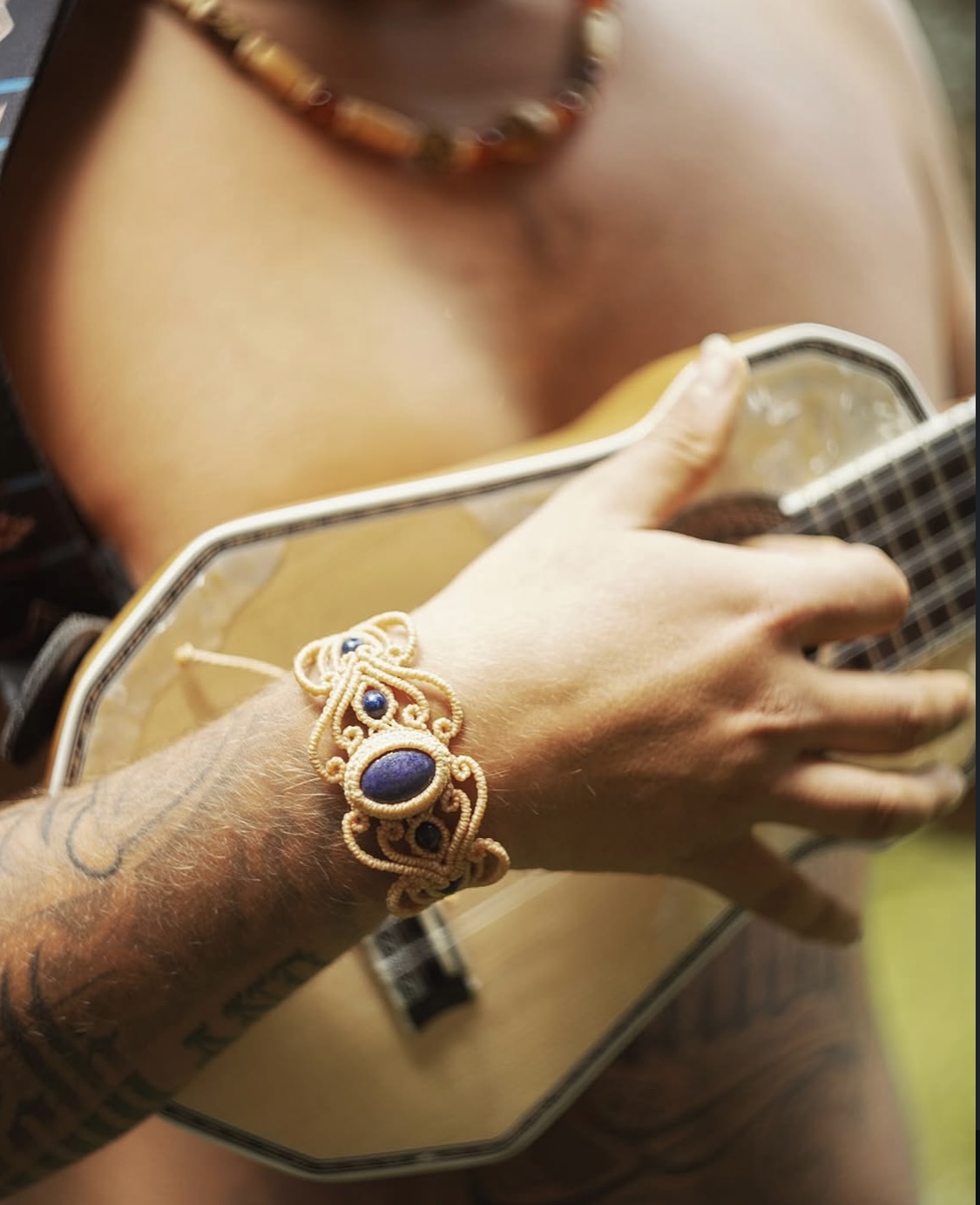 A handcrafted bracelet featuring an Andean Opal stone at the center. Its woven design creates a balanced piece with a grounded yet elegant presence, inspired by the natural beauty of the Andes.