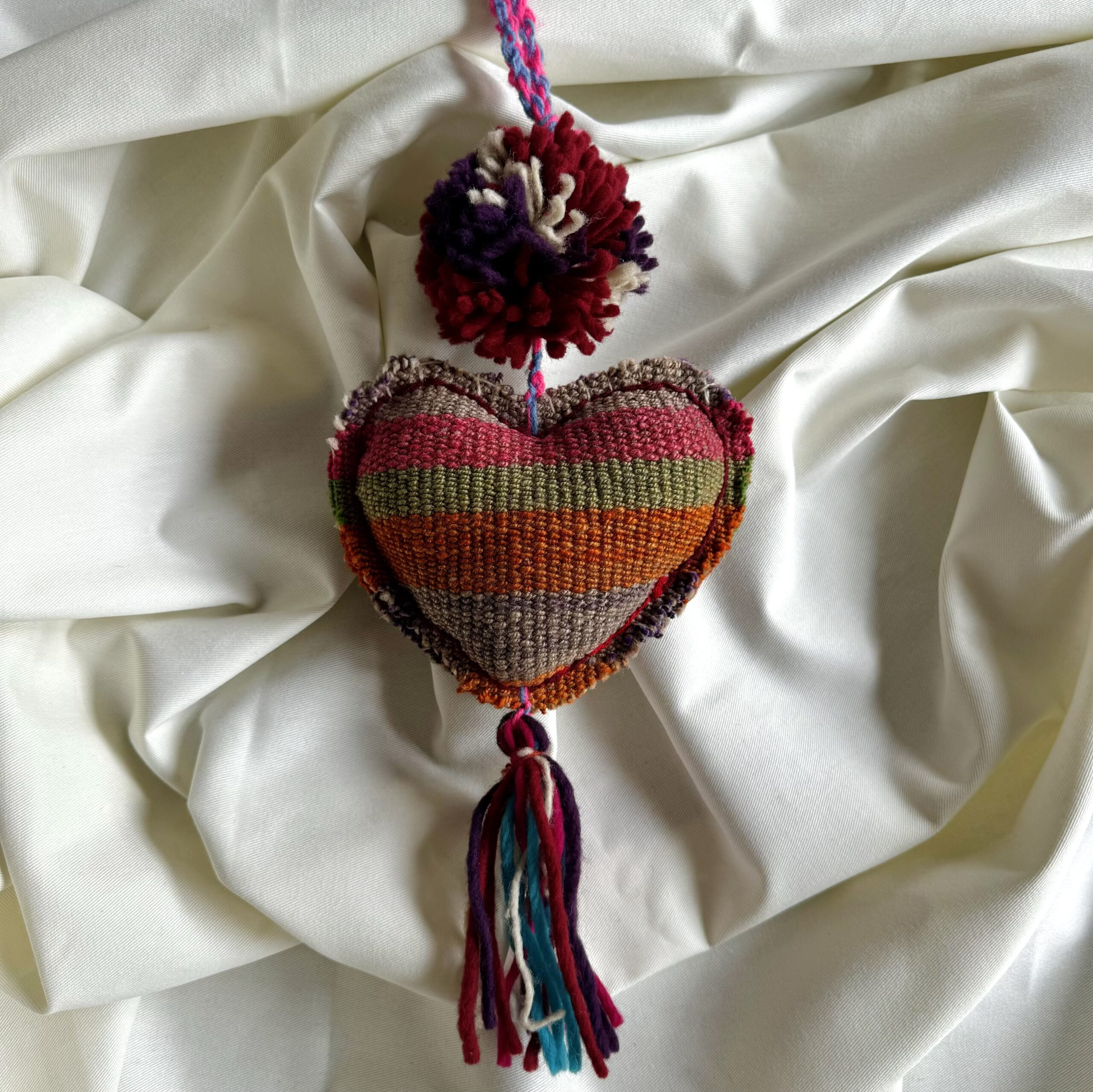 This handcrafted heart ornament is woven from sheep wool and naturally dyed using plants and minerals. A charming decorative piece created to bring warmth, color, and loving energy into your home.