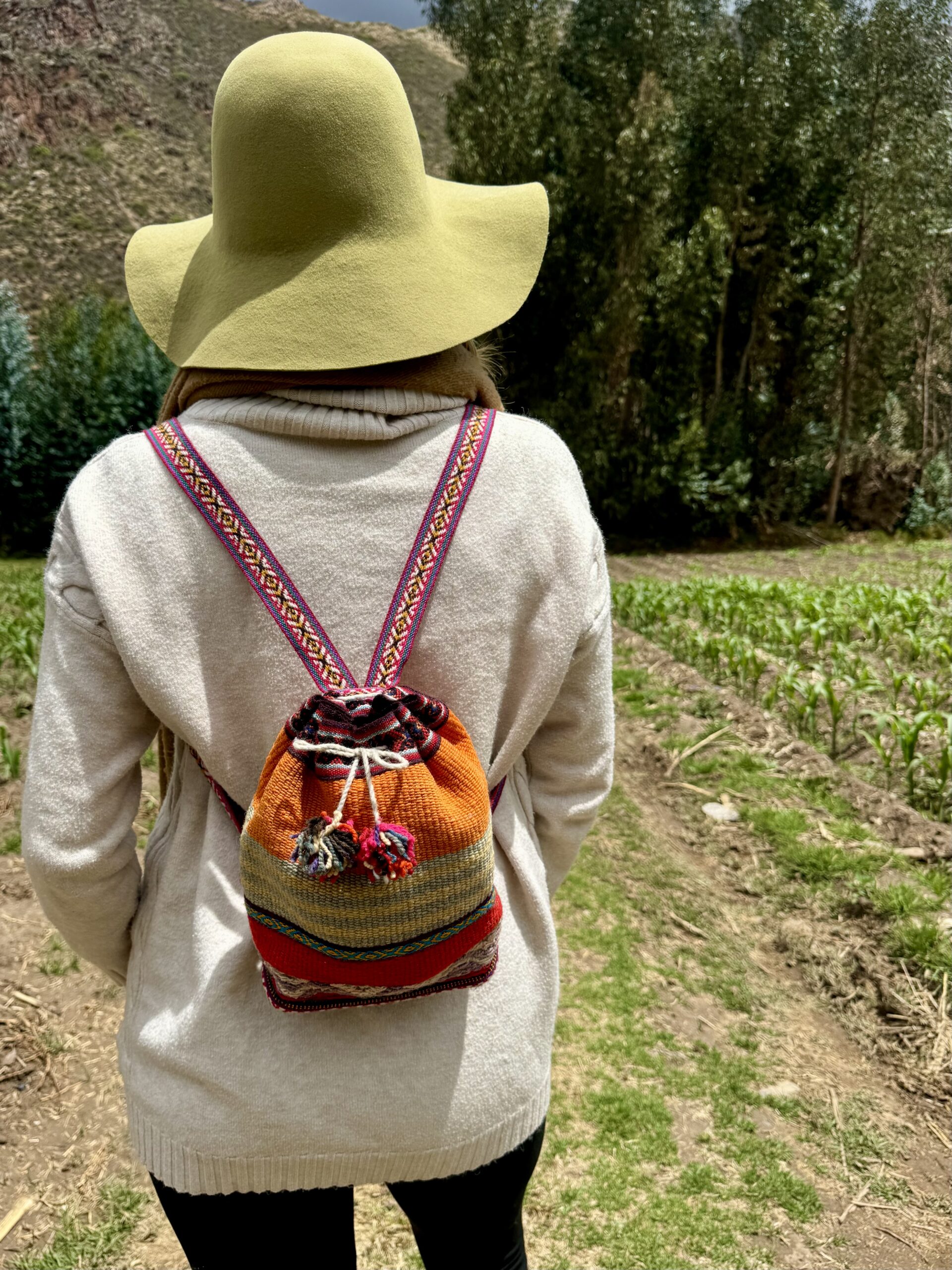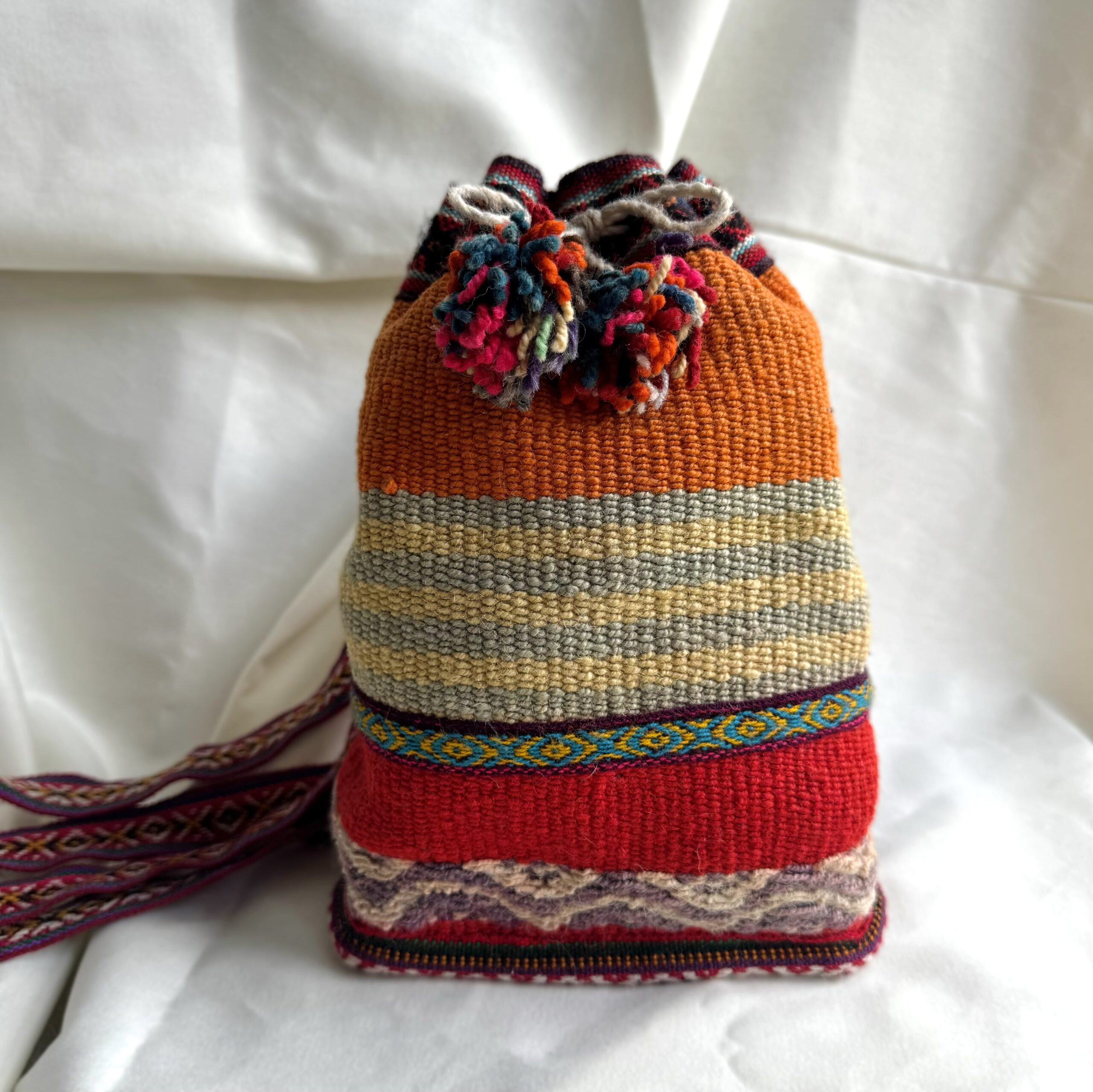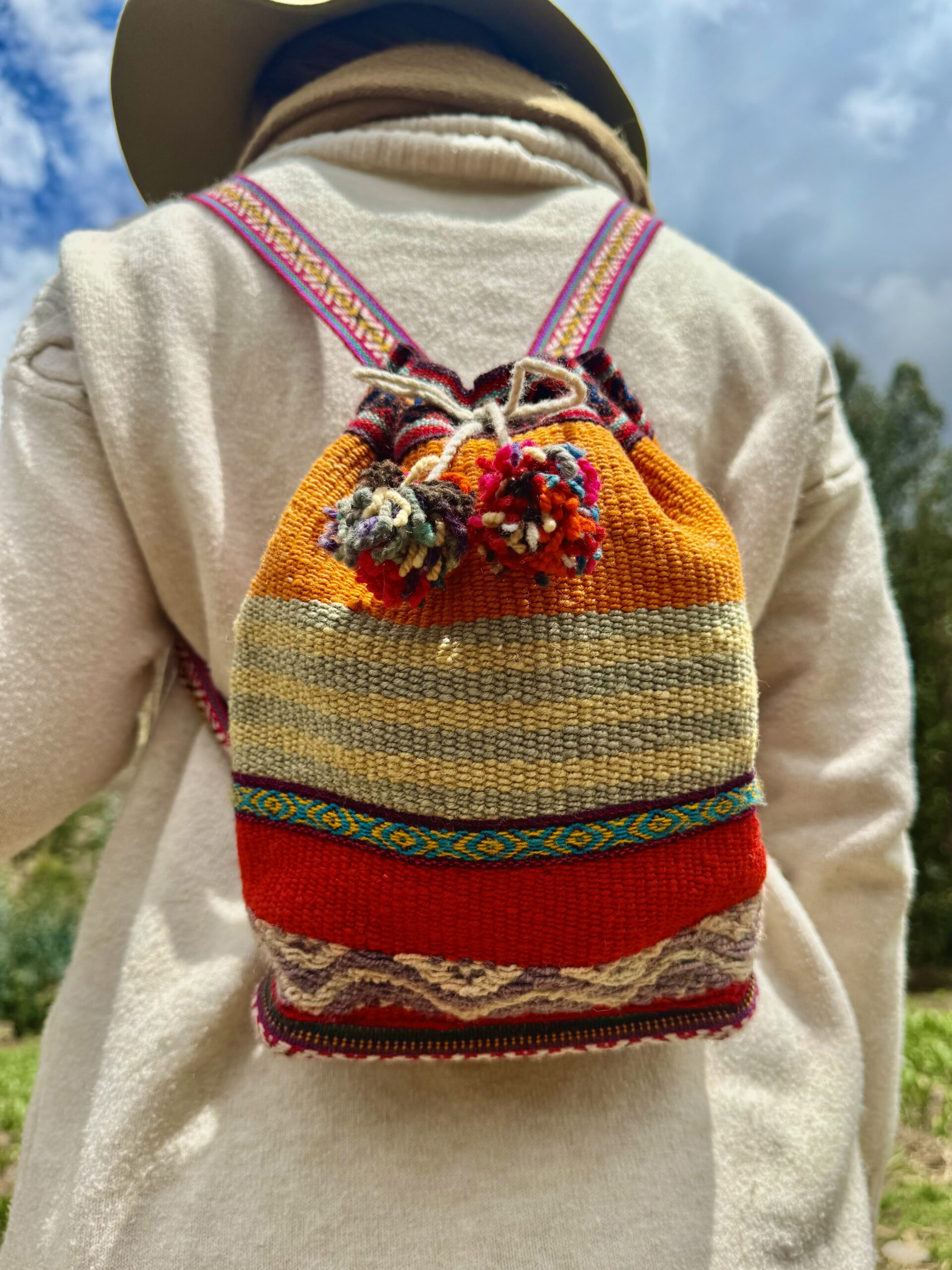 This vibrant handwoven backpack is made from sheep wool and crafted with bright Andean-inspired patterns. Fully lined on the inside, it’s designed to carry your essentials with comfort, color, and intention — perfect for everyday adventures, outings, or travel.