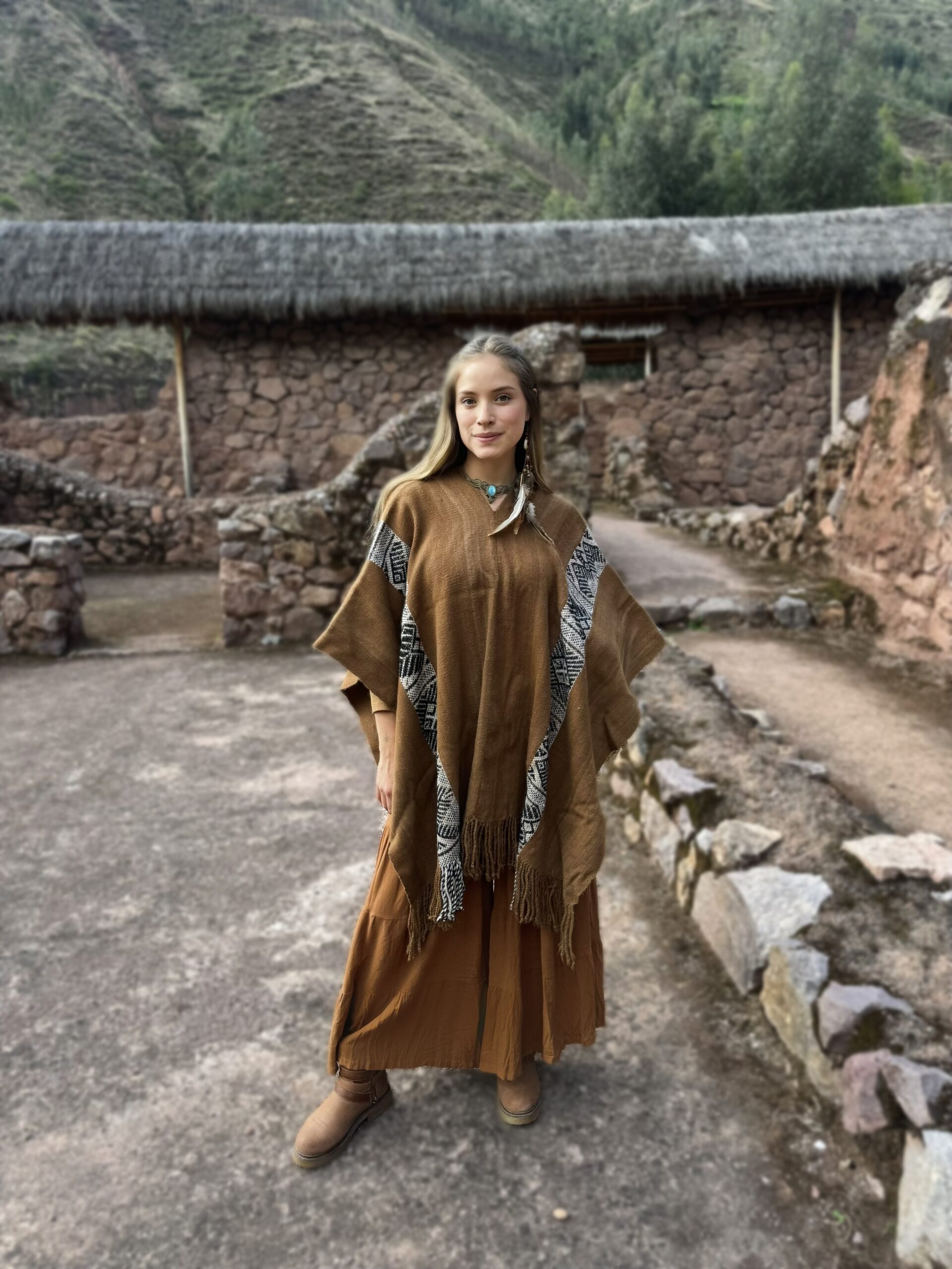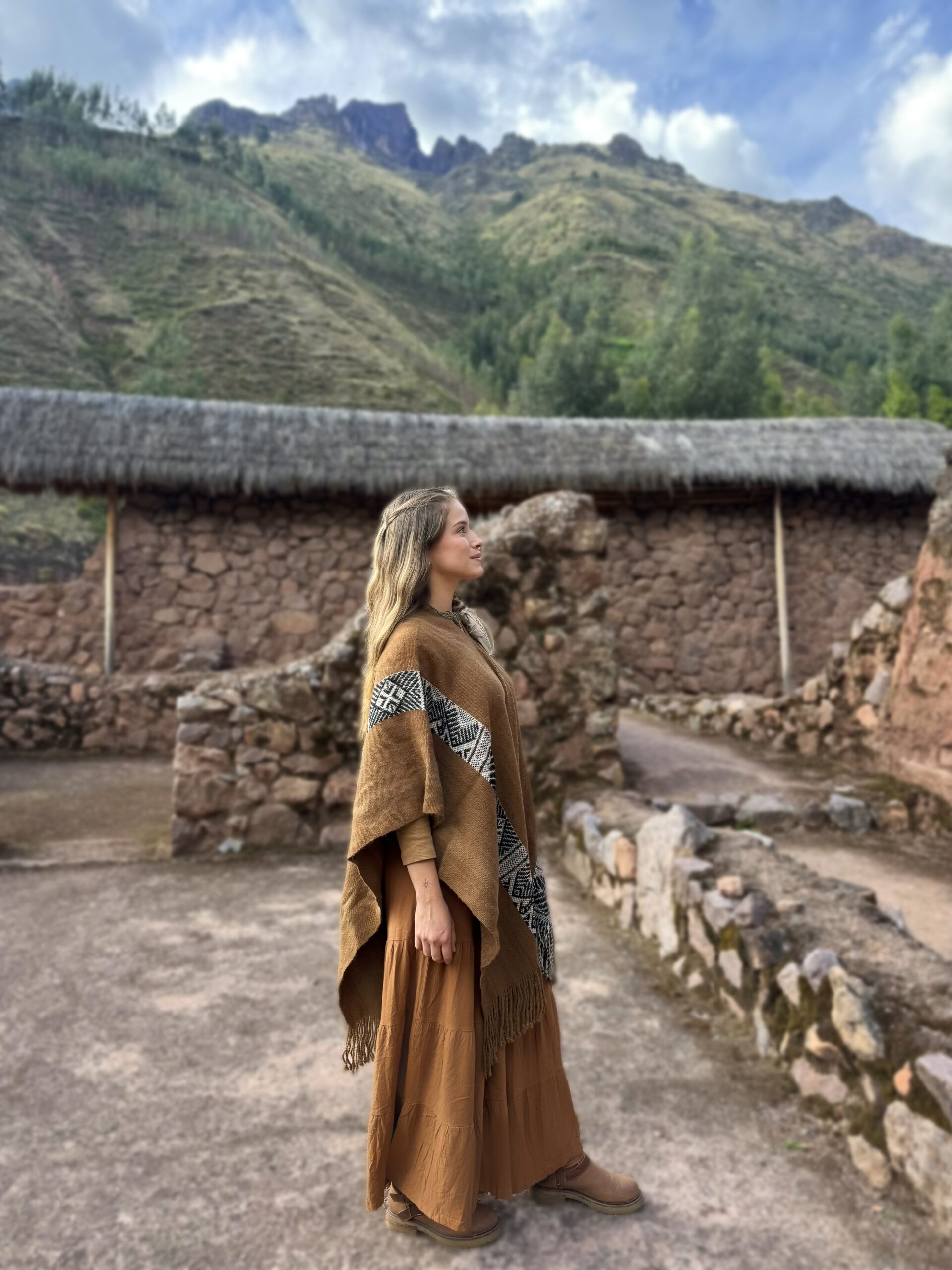 Wrap yourself in the warmth of the Andes with this handwoven baby alpaca poncho, crafted by artisan Maria in the highlands of Cusco, Peru.